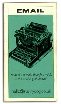 Contact me on email - hello[at]starrydog.co.uk, follow me on Twitter - @starrydog - and see my photos on Flickr - *starrydog